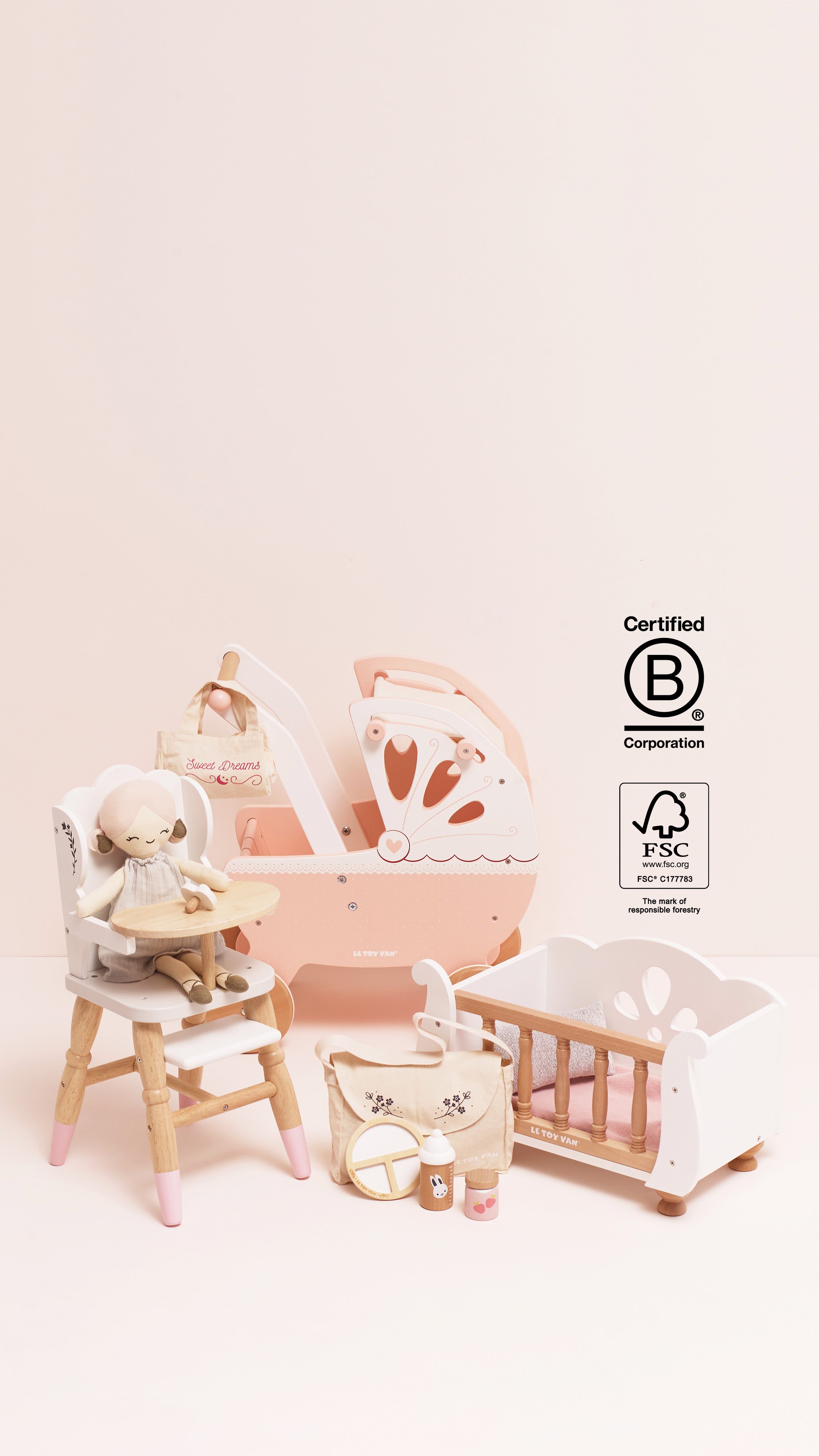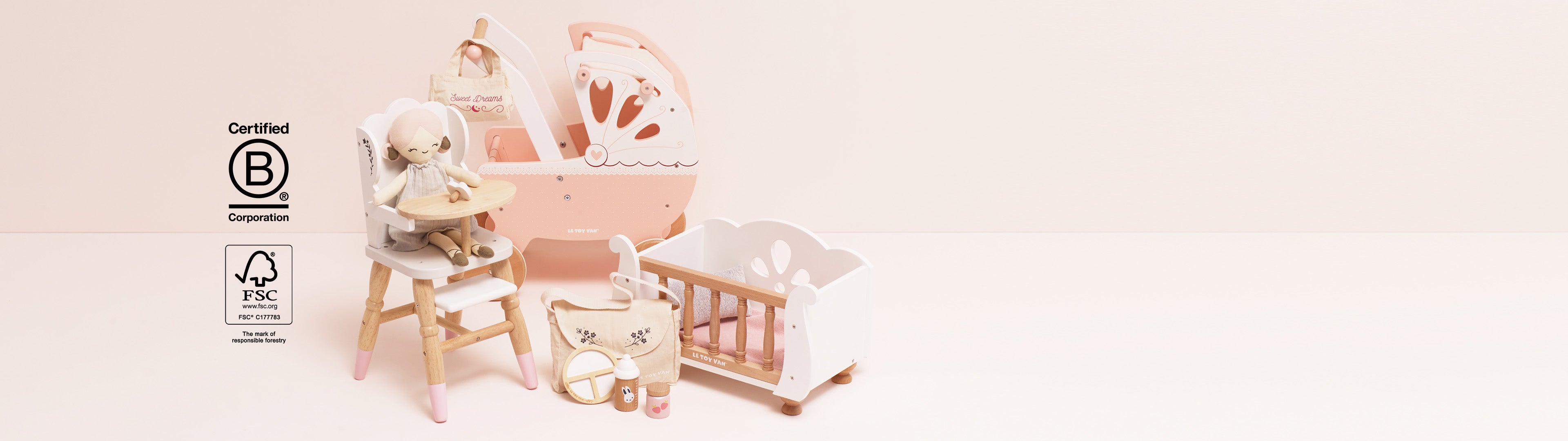 At Le Toy Van, we are committed to creating sustainable toys that last for generations. Our wooden toys are crafted from durable, responsibly sourced wood and finished with non-toxic, water-based paints, ensuring they are safe for your child and eco-friendly. From wooden train sets to doll houses, play kitchens, ride-on toys, and building blocks, we offer a wide range of high-quality toys that inspire creativity and fun for children of all ages.