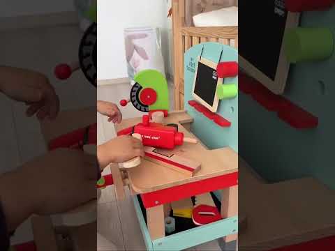 Featuring a drill and turning saw, clamp, saw, hammer, screwdriver, spirit level, right-angle ruler, spanner and chalkboard, budding builders will delight in roleplay fun. There's even a handy storage shelf and two wooden planks for screwing in the nuts and bolts.