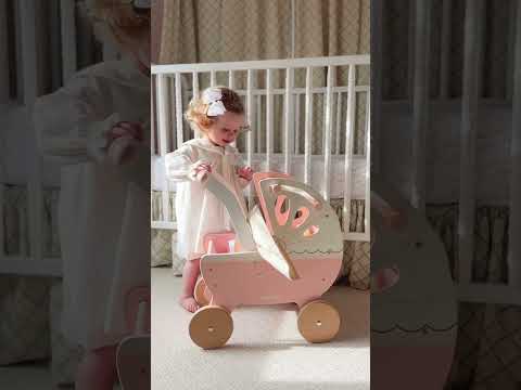 Take dolly out and about on all their childhood adventures with our beautiful, traditional wooden doll pram stroller. Lovingly designed, this little beauty is full of nostalgia, adorned with prettiest, delicate detailing with heart and lace motifs. Featuring a soft pastel pink, cream and fresh white colour palette, it's strong structure, soft padded mattress and unique retractable hand-sewn canopy makes it the perfect pram to take soft toys and dolls out in style.