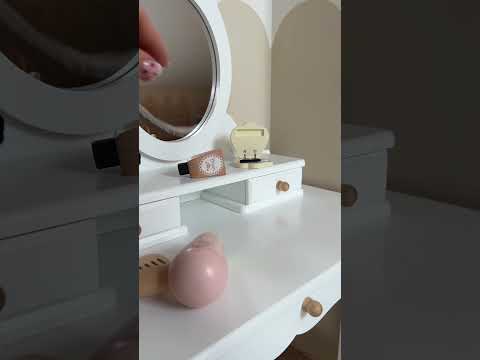 Winner of the Independent Toy Gold Award 2022. This beautiful, vintage style vanity table is sure to make childhood dreams come true! The perfect addition to your child's bedroom or playroom, this stunning dressing table is full of timeless elegance to delight little ones, for engaging play. With an impressive Victorian inspired oval mirror, 2-tiered table and 3 separate storage drawers - perfect for stowing away little treasures and trinkets.