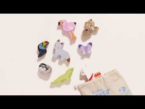 Painted in colourful hues using non-toxic, chip resistant paints, this cute set comprises eight chunky wooden animal shaped blocks and a little 'snow' peaked mountain, perfectly sized for small hands to grasp and includes a host of friendly pals including a llama, sloth, flamingo, lizard, toucan, butterfly and more.